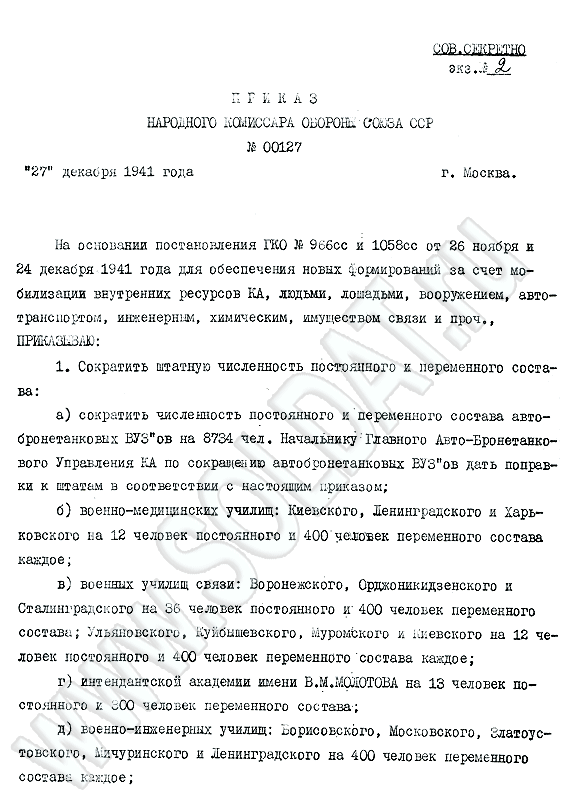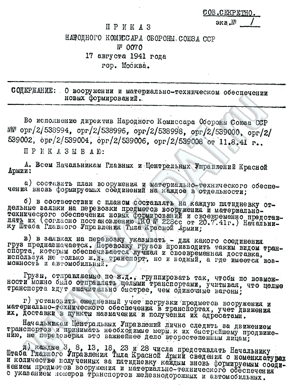 Запрещение ВВС Красной Армии, МВО и военным советам фронтов брать подразделения и материальную часть из частей ПВО |