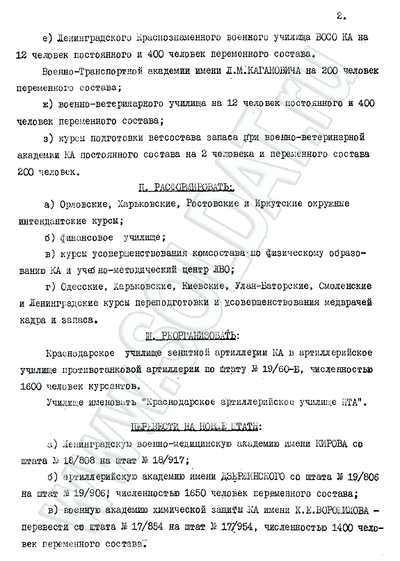 О сформировании новых училищ и школ ВВС, расширении военно-воздушной академии им. Н.Е. Жуковского и сформировании Ленинградской военно-воздушной академии |