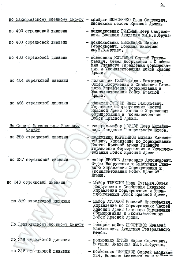 Перевод стрелковых дивизий на новые штаты (и расформировании соединений) |
