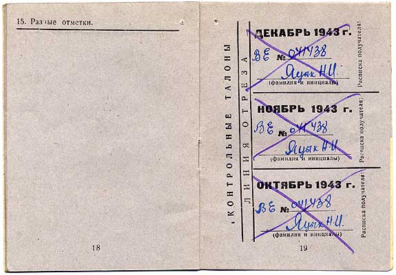 Расчетная книжка начальствующего состава Красной Армии (обр. 1943 г.) - разворот 8