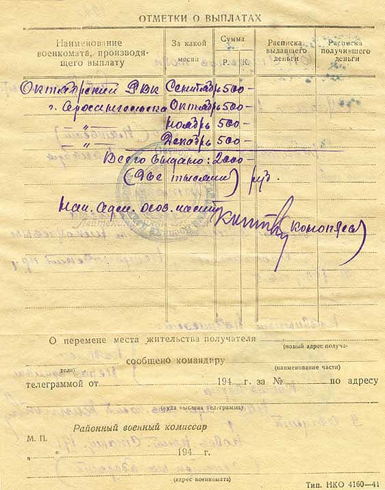 Денежный аттестат № 122 (на семью) - сторона 2