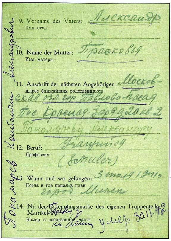 Немецкая "зеленая" карточка для оповещения родственника пленного - сторона 2