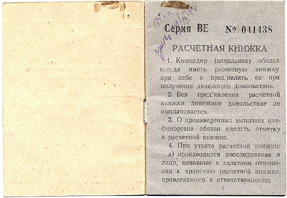 Расчетная книжка начальствующего состава Красной Армии (обр. 1943 г.) - разворот 2
