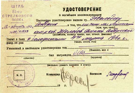 Удостоверение о погибшем военнослужащем (5 видов; Финская война) - страница 2