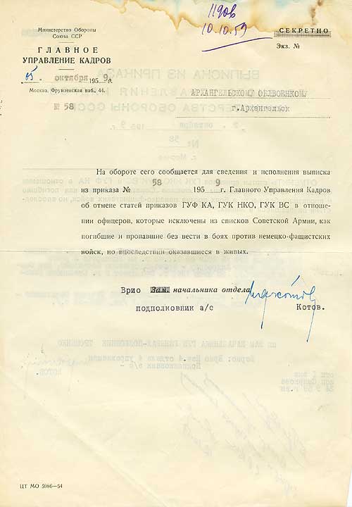 Выписка из приказа главного управления кадров министерства обороны СССР - сторона 2