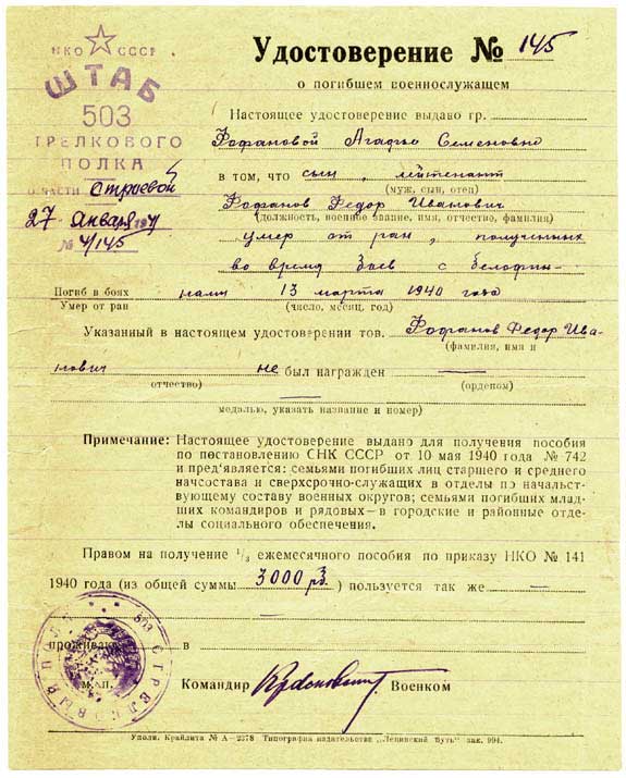 Удостоверение о погибшем военнослужащем (5 видов; Финская война) - страница 3