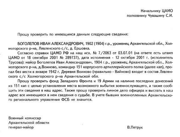 Пример розыска Боголепова Ивана Александровича, командира 151 корпусного артполка (7 листов) - лист 4