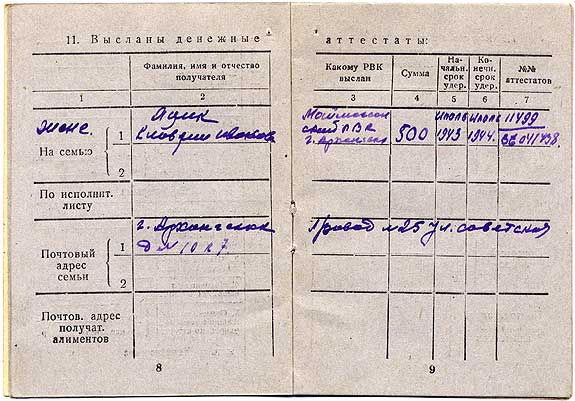 Расчетная книжка начальствующего состава Красной Армии (обр. 1943 г.) - разворот 6