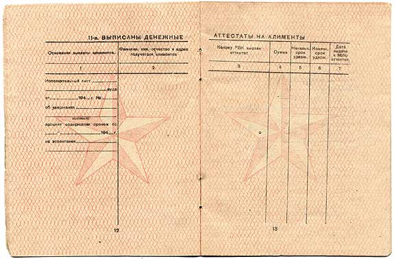 Расчетная книжка офицера Красной Армии 1945 г. - разворот 7