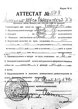 Аттестат №1503 лейтенанта 227 сп. Висикирского Д.Д.