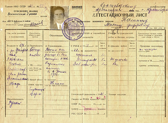 Аттестационный лист на присвоение очередного офицерского звания - довоенного образца - сторона 1