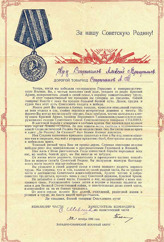Благодарность командира части Западно-Сибирского военного округа