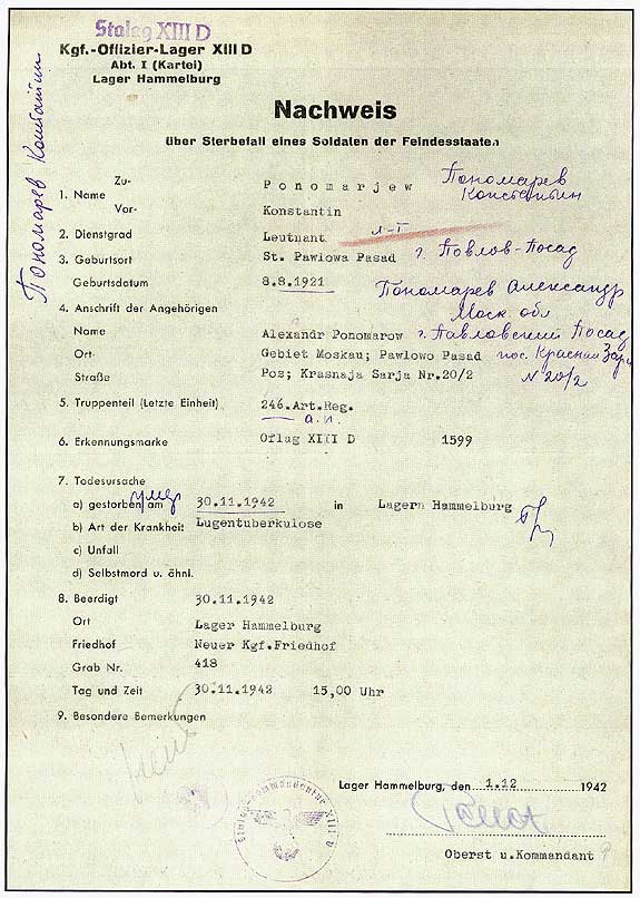 Немецкое донесение о смерти советского военнопленного