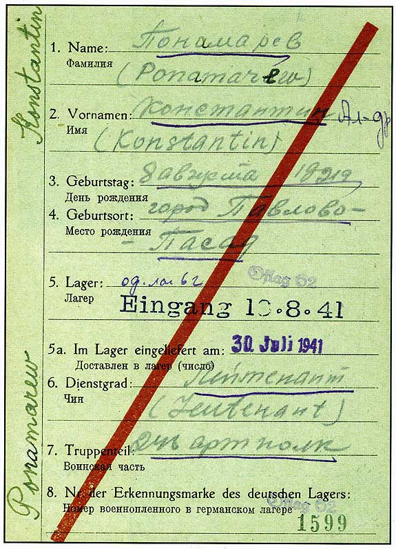 Немецкая "зеленая" карточка для оповещения родственника пленного - сторона 1