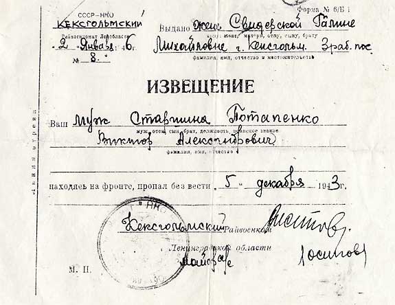 Извещение Кексгольмского ГВК Ленинградской обл.