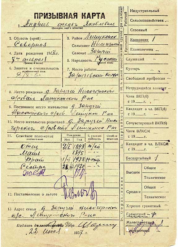 Призывная карта со справочными сведениями на призывника - страница 1