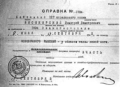 Справка №1784 лейтенанта 227 сп. Висикирского Д.Д.