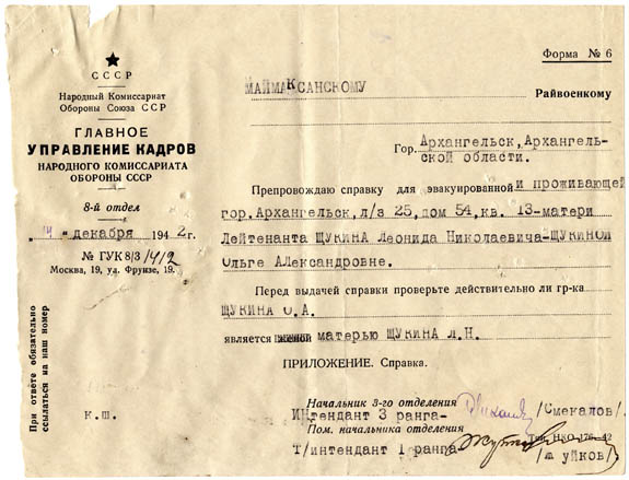 Сопроводительное отношение к справке из ГУК НКО СССР
