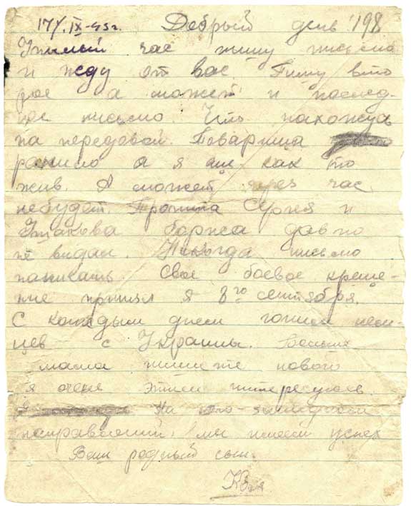 Письмо Суханова Николая Павловича отцу от 17 сентября 1943 года - сторона 1
