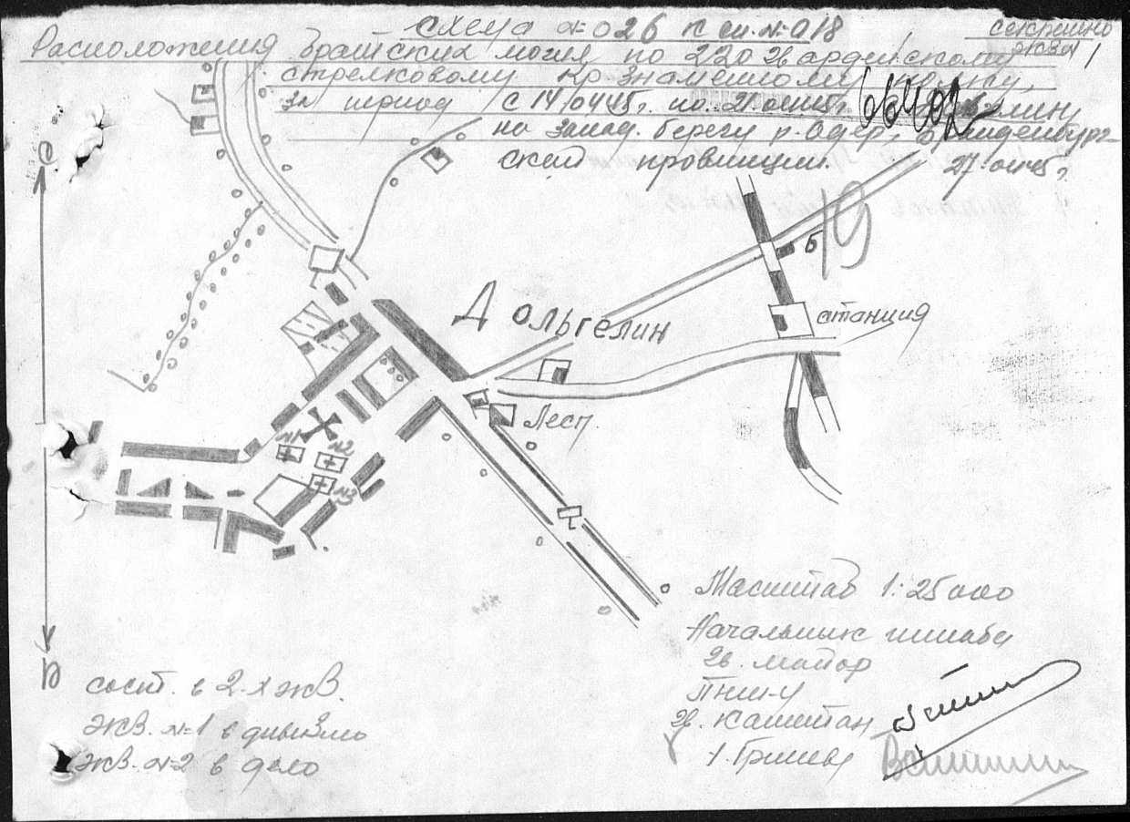 Схема захоронений воинов 220 гв.сп в н.п.Долгелин (Германия)