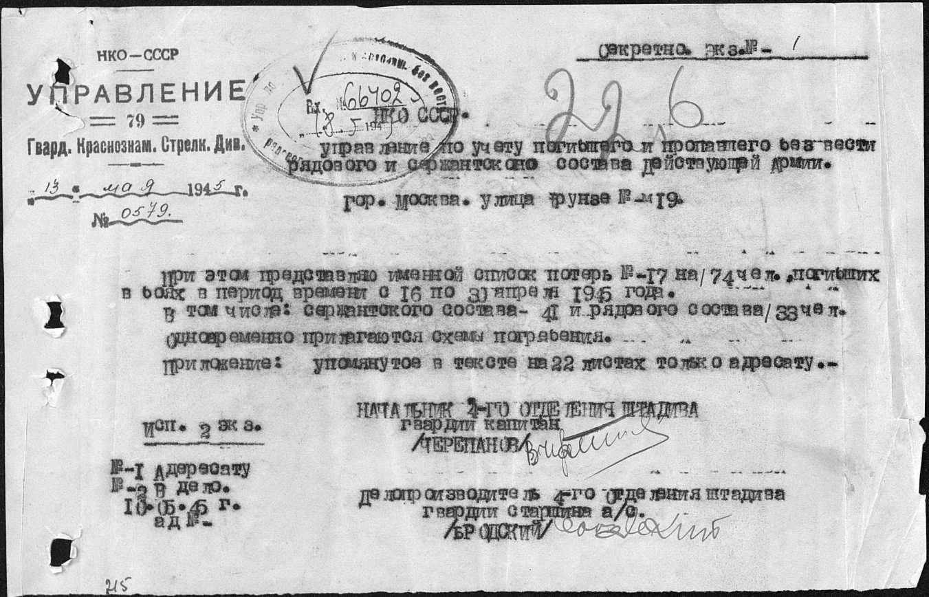 Сопроводительная записка 79 гсд к безвозвратным потерям