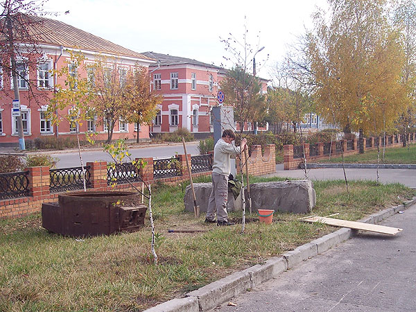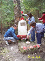 Здесь фотографии первой зарубки на березе и памятник, который мы поставили