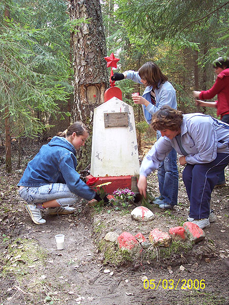 Каждый год в начале мая мы ездим туда. Убираемся, красим памятник, проводим Урок Мужества.