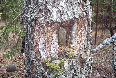 Вот так выглядит зарубка на березе сейчас, а сделали мы ее в 1982 году. После