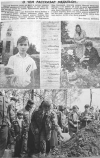 Те годы, которые пропущены, мы тоже вели поисковую работу, поднимали останки, но медальонов не было, или были разбитые, или пустые или с нитками и иголками.