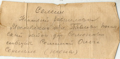 Адрес семьи: Москва, Марьина Роща, 1 проезд, д. 2, кв. 6. Надежда М.