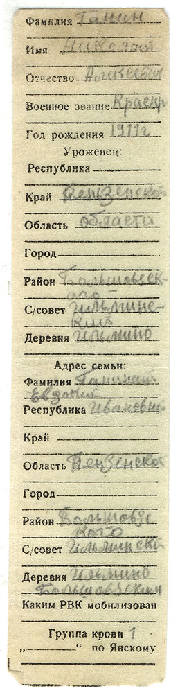 установлено, что рядовой Ганин Николай Алексеевич, 1911 года рождения, уроженец
