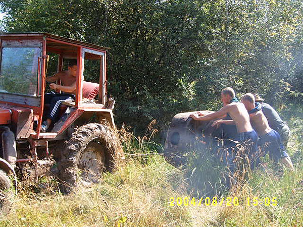 Права на управление трактором у него есть. Володя в кабине - мы на подхвате. |