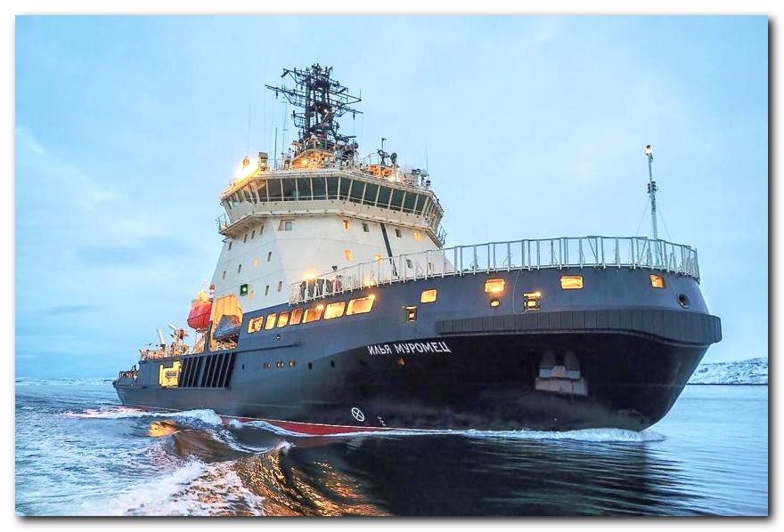 "Всего программой развития вспомогательного флота РФ до 2033 года запланировано строительство пяти ледоколов и трёх универсальных транспортов грузоподъёмностью по 6 тыс. т каждый с усилением ледового класса до 1 м. Это позволит значительно повысить возможность вспомогательного флота по доставке грузов в районы Крайнего Севера", – заявил Ефимов в рамках круглого стола в Совете Федерации. До половины грузов, доставляемых по воде для нужд гарнизонов на Крайнем Севере, проходят через Северный морской путь, подчеркнул Андрей Ефимов. Для этих целей в состав вспомогательного флота ВМФ России в 2017 году включили два морских судна: "Эльбрус" грузоподъёмностью до 2 тыс. т, способный самостоятельно идти в ледовой обстановке до 80 см льда, а также дизель-электрический ледокол "Илья Муромец".