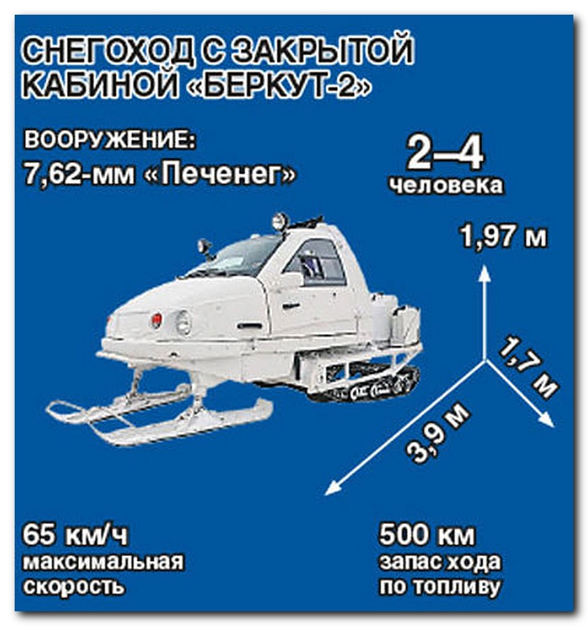 Снегоход для мотострелка, пограничника или спецназовца – незаменимое средство передвижения. Отечественные разработчики давно ломали голову над облегчёнными средствами доставки на плацдарм групп реагирования и боевого патрулирования специальных подразделений. Так появился снегоход "Беркут".