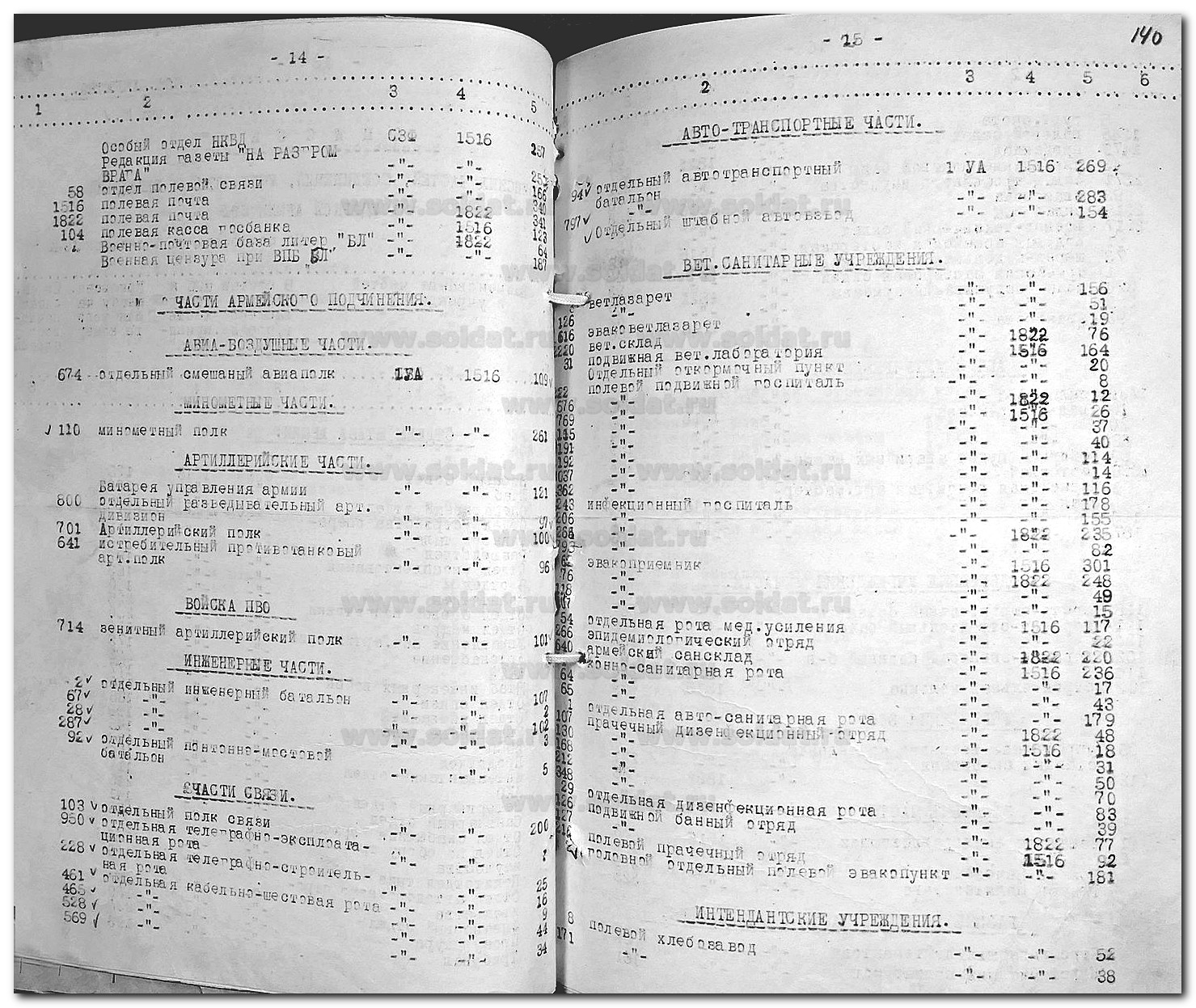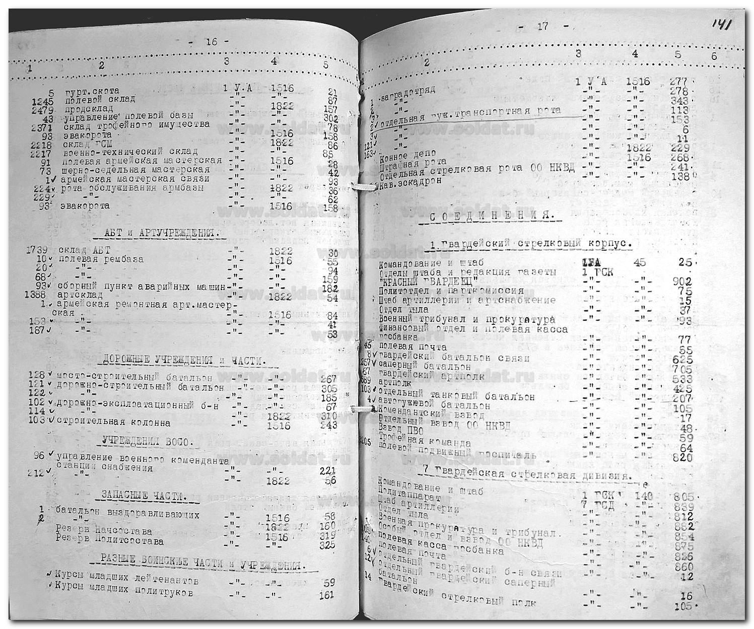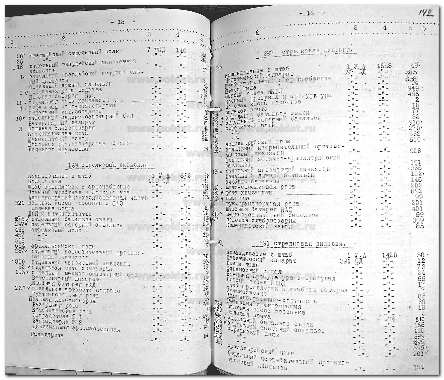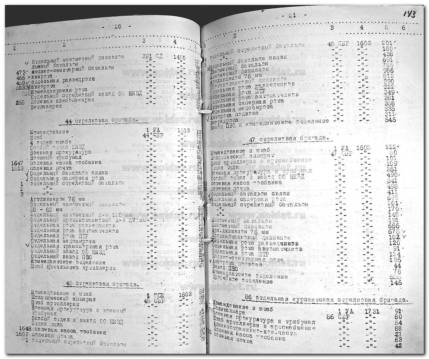 Сводные сведения по условным номерам в/ч и их действительным наименованиям за 10.1942 - 03.1943. 1 Ударная армия СЗФ.