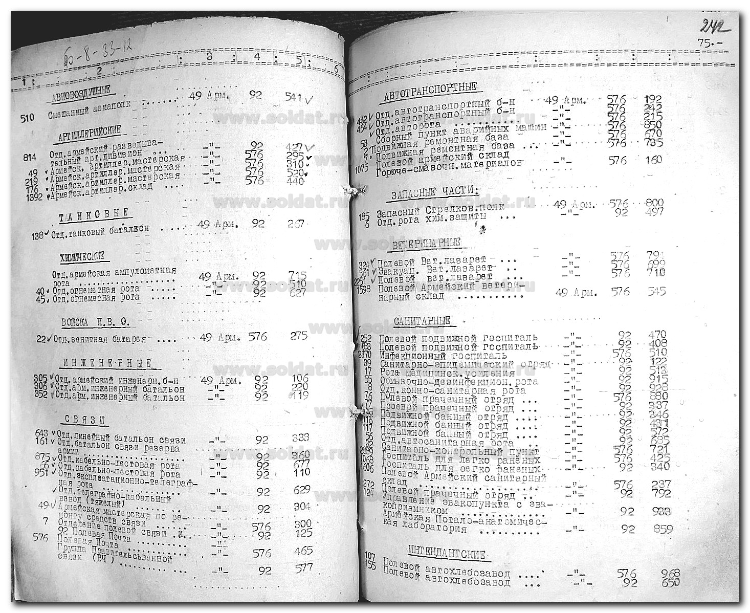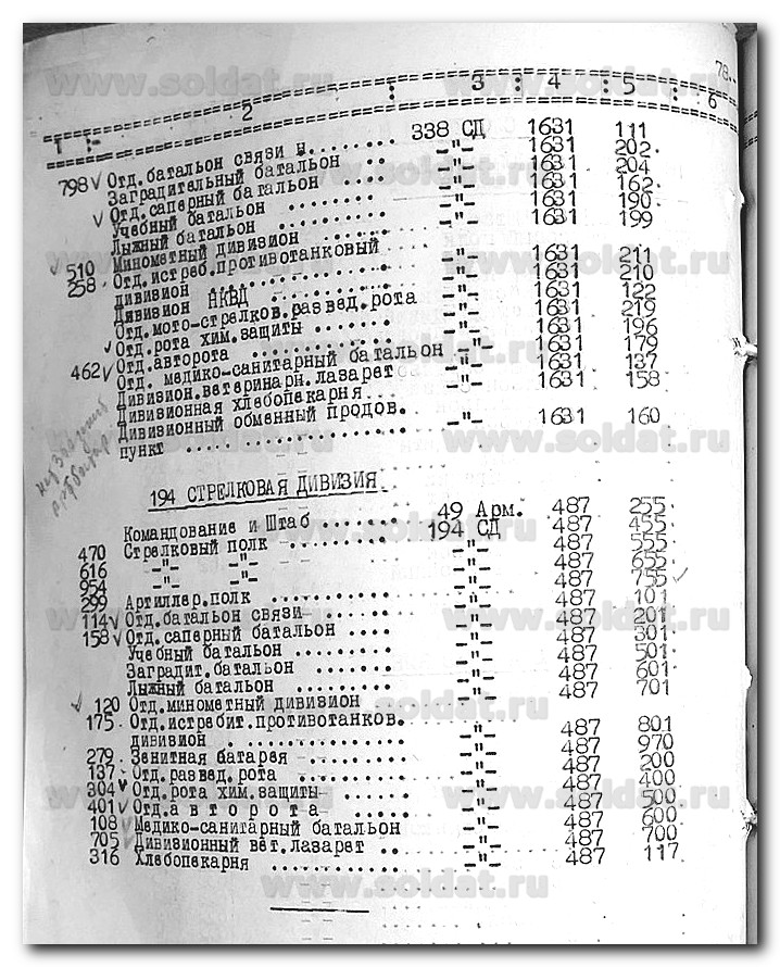| Новости > Сводные сведения по условным номерам в/ч и их действительным наименованиям за 10.1942 - 03.1943. 49 армия Западного фронта. |