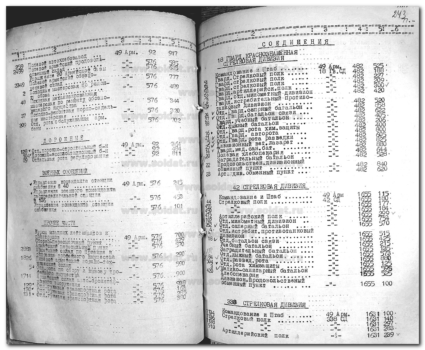 Сводные сведения по условным номерам в/ч и их действительным наименованиям за 10.1942 - 03.1943. 49 армия Западного фронта.