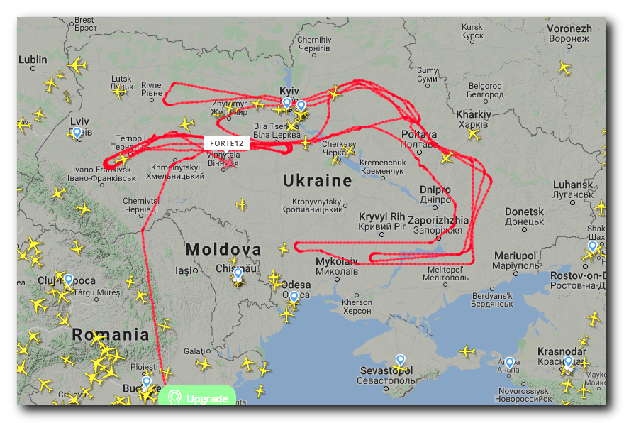 P.S. В эфире понеслись вести о том, что западные страховые компании отзывают гарантии по страховкам тем авиакомпаниям, что летают вна404. Те сразу же начали отказываться от рейсов и отзывать находящиеся в лизинге вна404 борты. Времени дано 48 часов, из них 24 уже прошли. Ниже показана картинка сайта https://www.flightradar24.com на 17.00 14.02.2022. Всего 26 бортов, из них 1 вертолёт, 1 беспилотник пиндосов "Global Hawk" (даны картинка его трека и спецификация) - и 7 бизнес-джетов. Бизнесмены побежали из 404. Но дело даже не в этом. Посмотрим завтра-послезавтра на количество бортов. Сработали страшилки страховщиков или нет?