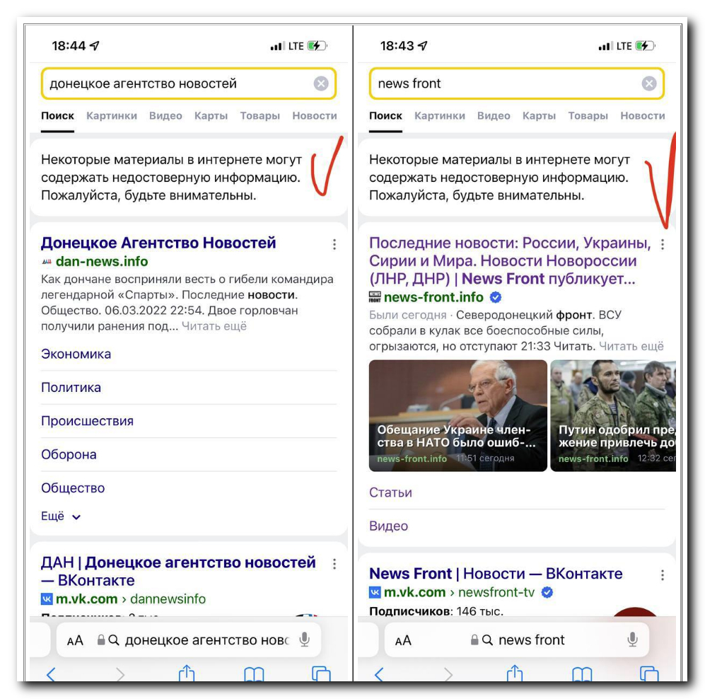 Яндекс начинает подыгрывать пропаганде врага. Если в поисковик забиваешь наши СМИ - появляется очень специфическая приписка, а если ищешь вражеские СМИ - подобной приписки нет.