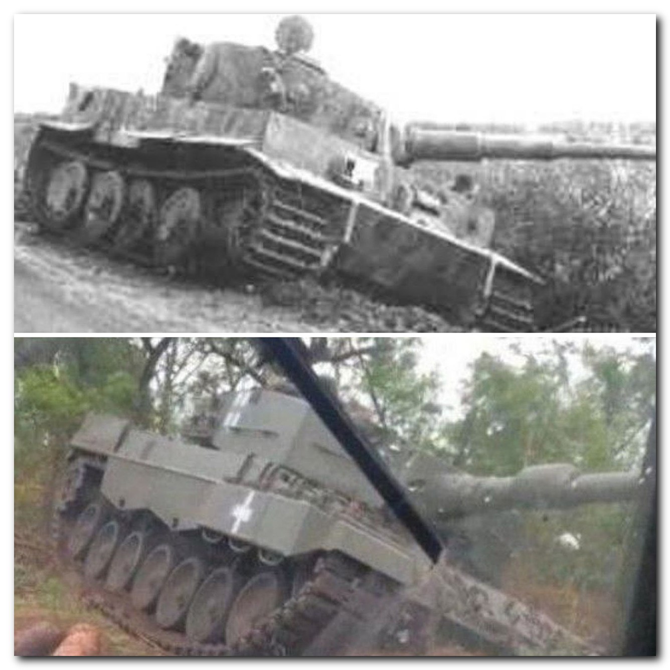 Ниже коллаж фото битых нашими бойцами немецких танков: 1943 г. - "Тигр", 2023 г. - "Леопард" 2А4. Не прошло и 80 лет, как они снова на нашей земле и снова биты!