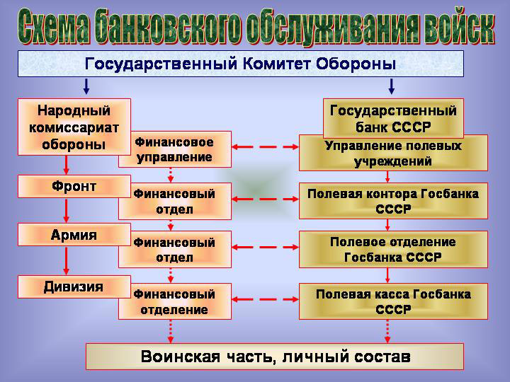 Особенности функционирования полевых учреждений Госбанка и проблема невостребованных вкладов военнослужащих характеризуются совместным приказом финансового управления Наркомата обороны и Управления полевых учреждений Госбанка от 29 мая 1945 года: