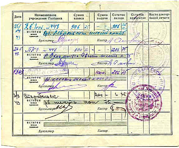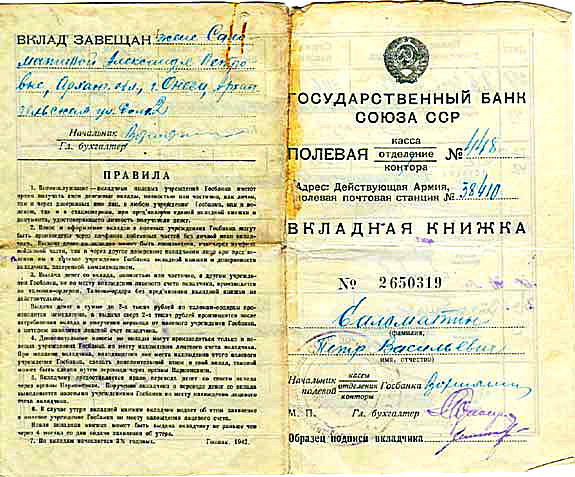 В ряде случаев вкладные книжки погибших военнослужащих направлялись... по месту призыва военнослужащих, минуя Госбанк. Отдельные из таких вкладных книжек терялись.
