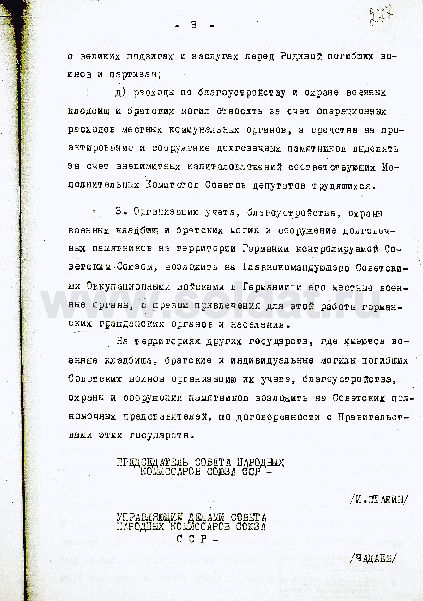 Председатель Совета Министров Союза ССР И.СТАЛИН