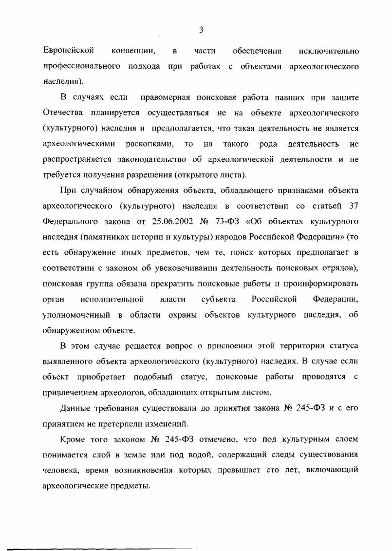 Так, в законопроекте № 217902-6, подготовленном Министерством культуры, “О внесении изменений в отдельные законодательные акты Российской Федерации в части пресечения незаконной деятельности в области археологии”, есть статья 243.1 (дополненная):