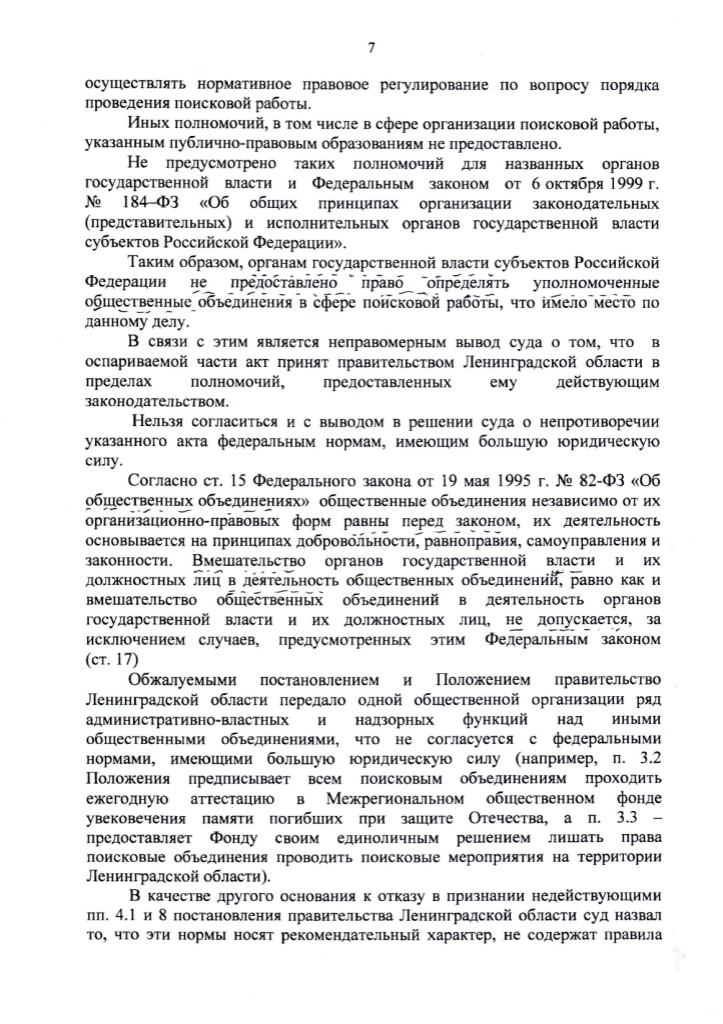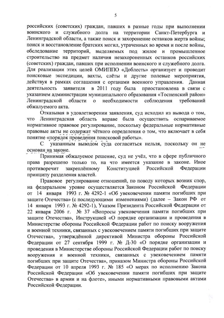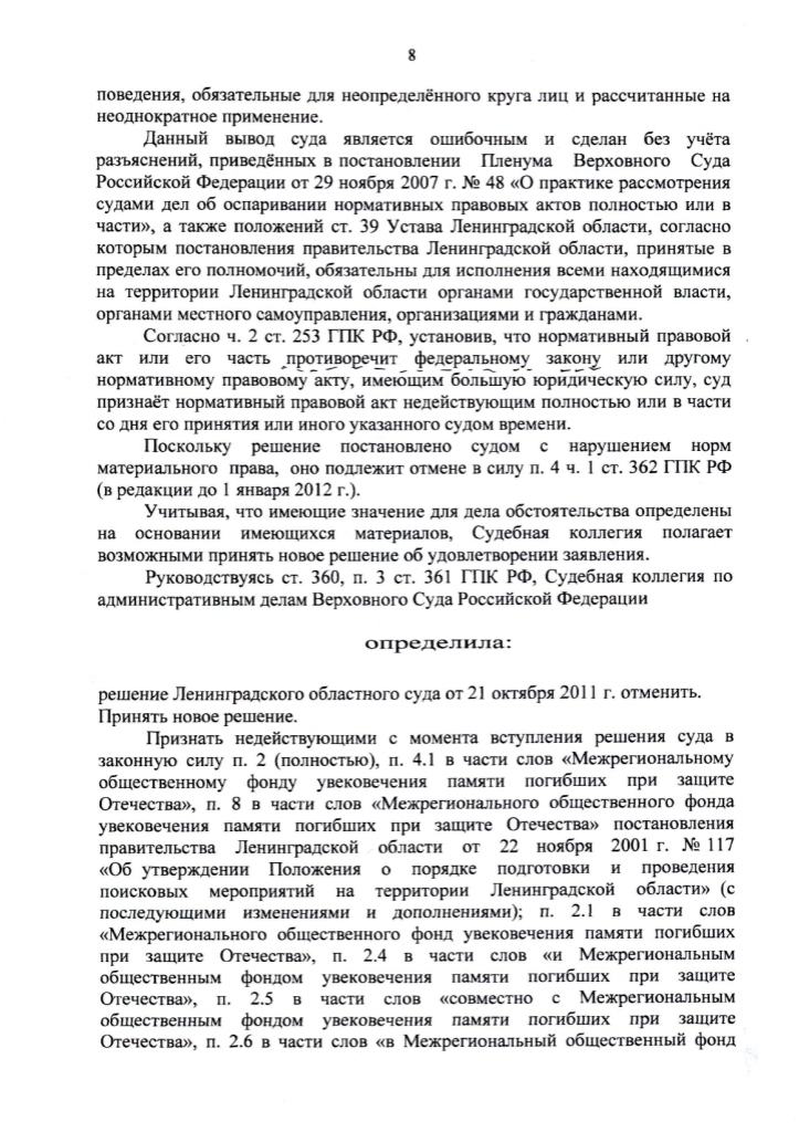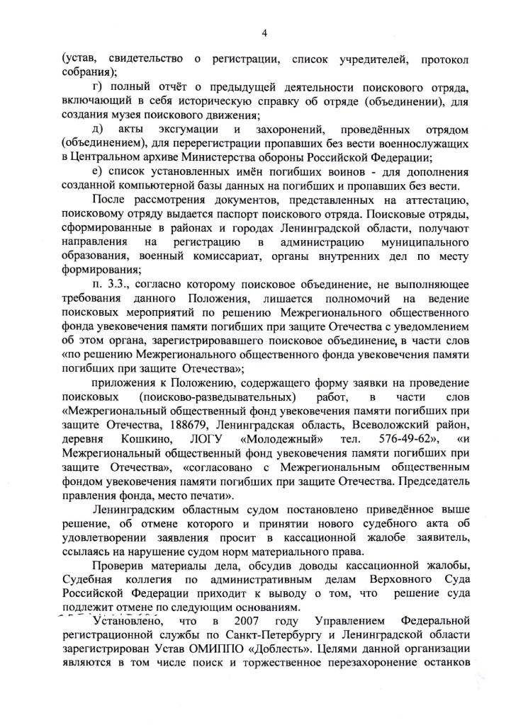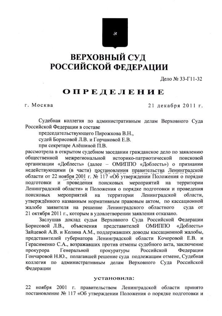 Вот так, не больше и не меньше. К радости чиновников Управления МО РФ по увековечению памяти погибших при защите Отечества, выраженной прилюдно в начале 2012 г., этим документом Верховный Суд внес полную дезорганизацию во всё поисковое движение и в умы поисковиков. Пусть аморфное, без центральной организации, без лидера, но вполне эффективно действующее, оно этим документом получило удар под самый корень своего существования. Теперь каждый, кто назвал себя поисковиком и создал из трех человек общественную организацию, даже без прав юридического лица, вооружившись этим документом, имел полное право "послать" кого угодно из поисковиков-общественников куда угодно. Почему сделан акцент на поисковиков-общественников? Ответ прост: поисковиков от государства в России не существует до сих пор. Нет таких штатных единиц ни в одной государственной организации, исключая некоторые госучреждения, созданные в регионах решениями местных губернаторов и вынужденные "маскироваться" под центры патриотического воспитания и прочие структуры.