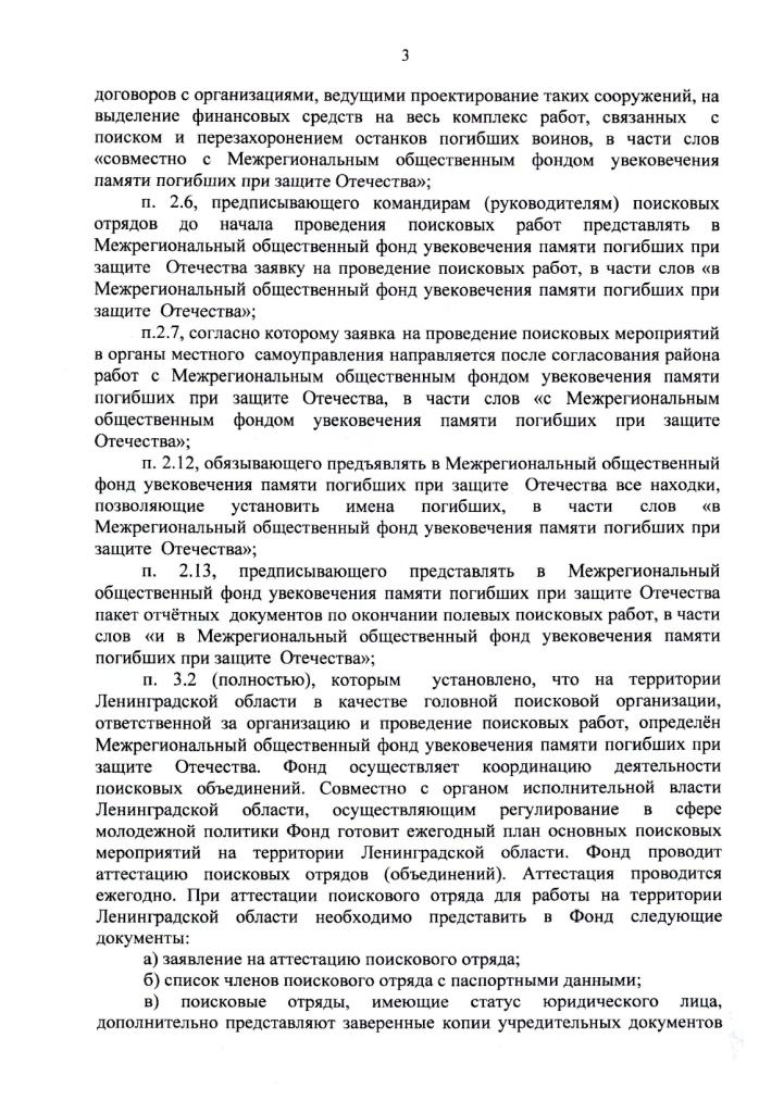 Разработанное поисковиками в 2007 г. "Положение о порядке подготовки и проведения поисковой работы в РФ" за 6 лет несколько раз рассматривалось в недрах нескольких министерств РФ и администрации Президента РФ, но так и не получило ни положительной, ни отрицательной оценок, ни предложений по внесению изменений и дополнений. Его несколько раз тихо "замяли".