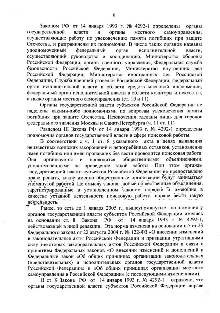 Необходимо также отметить, что почти за 8 лет действия Указа Президента РФ № 37 от 22.01.2006, возложившего на МО РФ функции уполномоченной организации в сфере увековечения памяти о погибших при защите Отечества, Министерством не сделано и не создано ровным счетом ничего, что могло бы: